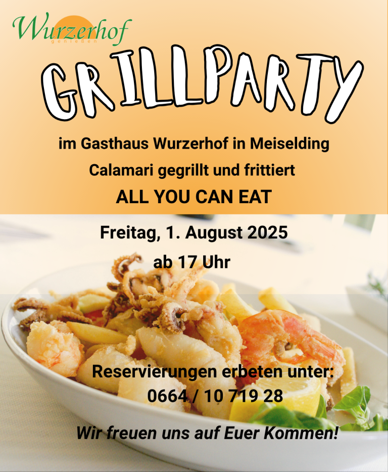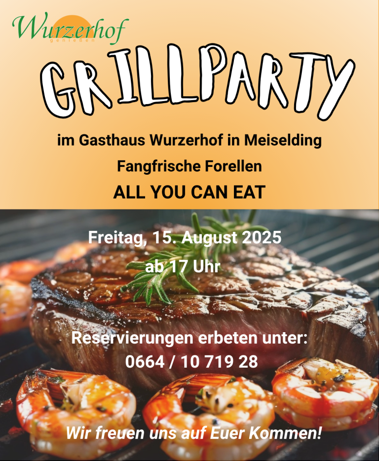 Aktuelles +43 42 62 / 50 150 gasthof@wurzerhof.com Öffnungszeiten Grillparty am Feiertag Liebe Gäste, am Freitag, den 15. August 2025, ab 17 Uhr laden wir euch herzlich zu unserem nächsten Grillabend mit All You Can Eat ins Gasthaus Wurzerhof ein!…