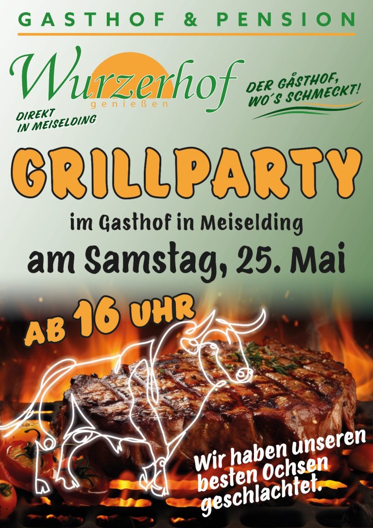 Aktuelles +43 42 62 / 50 150 gasthof@wurzerhof.com Öffnungszeiten Grillparty GRILLPARTY im Gasthaus Wurzerhof in Meiselding! Wir laden euch herzlich zur Grillparty im Gasthaus Wurzerhof in Meiselding ein! Am Samstag, den 25. Mai 2024, ab 16 Uhr verwöhnen wir euch…