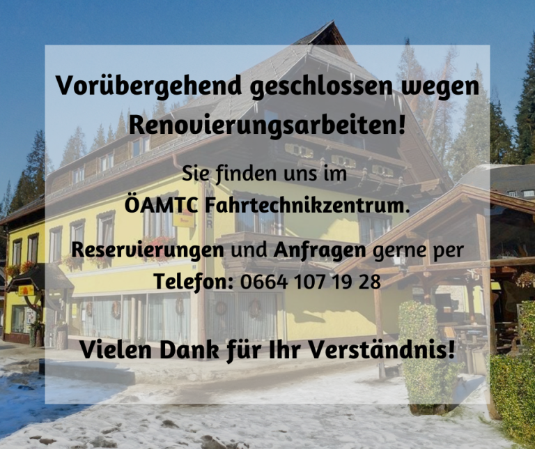 Aktuelles +43 42 62 / 50 150 gasthof@wurzerhof.com Öffnungszeiten Renovierung Gasthaus Wurzerhof in Meiselding Vorübergehend geschlossen wegen Renovierungsarbeiten. Sie finden uns im ÖAMTC Fahrtechnikzentrum. Reservierungen und Anfragen bitte gerne telefonisch unter +43 664 1071928. Vielen Dank für Ihr Verständnis. Ihr…